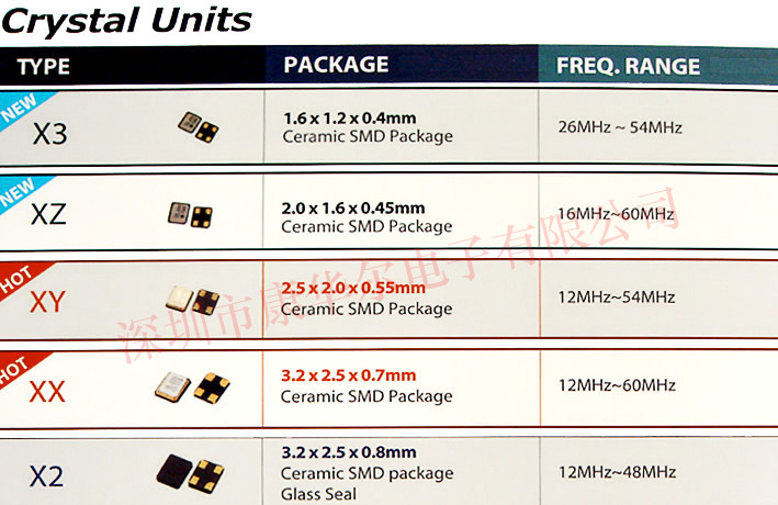 晶振目錄表 | 泰藝石英晶體諧振器 XZ | ||||