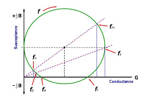 串聯(lián)偕振頻率及并聯(lián)偕振頻率, fs and fp ,是分別由電導(real part of the admittance)最大和阻抗(real part of the electric input impedance)最大時的頻率.