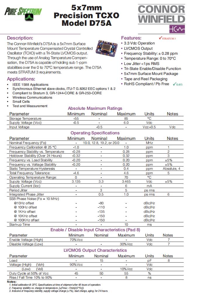D75A-019.2M|TCXO石英晶體振蕩器|6G以太網晶振,美國ConnorWinfield晶振,D75A