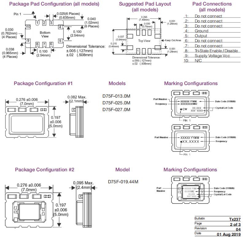 | XM-1-012.0M | Connor-Winfield | XM-1 | 12MHz | ±50ppm | ±50ppm | 16pF | 50 Ohm | -10°C ~ 60°C |