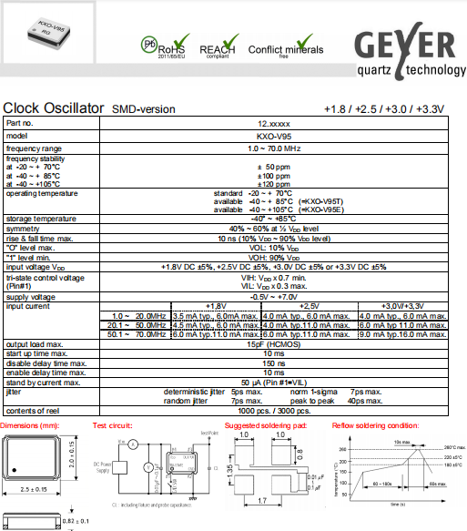 Geyer晶振,KXO-V95晶振,低功耗振蕩器.2520mm體積的晶振,可以說(shuō)是目前小型數(shù)碼產(chǎn)品的福音,目前超小型的智能手機(jī)里面所應(yīng)用的就是小型的石英晶振,該產(chǎn)品最適用于無(wú)線(xiàn)通訊系統(tǒng),無(wú)線(xiàn)局域網(wǎng),已實(shí)現(xiàn)低相位噪聲,低電壓,低消費(fèi)電流和高穩(wěn)定度,超小型,質(zhì)量輕等產(chǎn)品特點(diǎn),產(chǎn)品本身編帶包裝方式,可對(duì)應(yīng)自動(dòng)高速貼片機(jī)應(yīng)用,以及高溫回流焊接(產(chǎn)品無(wú)鉛對(duì)應(yīng)),為無(wú)鉛產(chǎn)品.