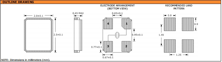 | 頻率老化 | f_age | ±5 × 10-6 / year Max. | +25°C,第一年 |