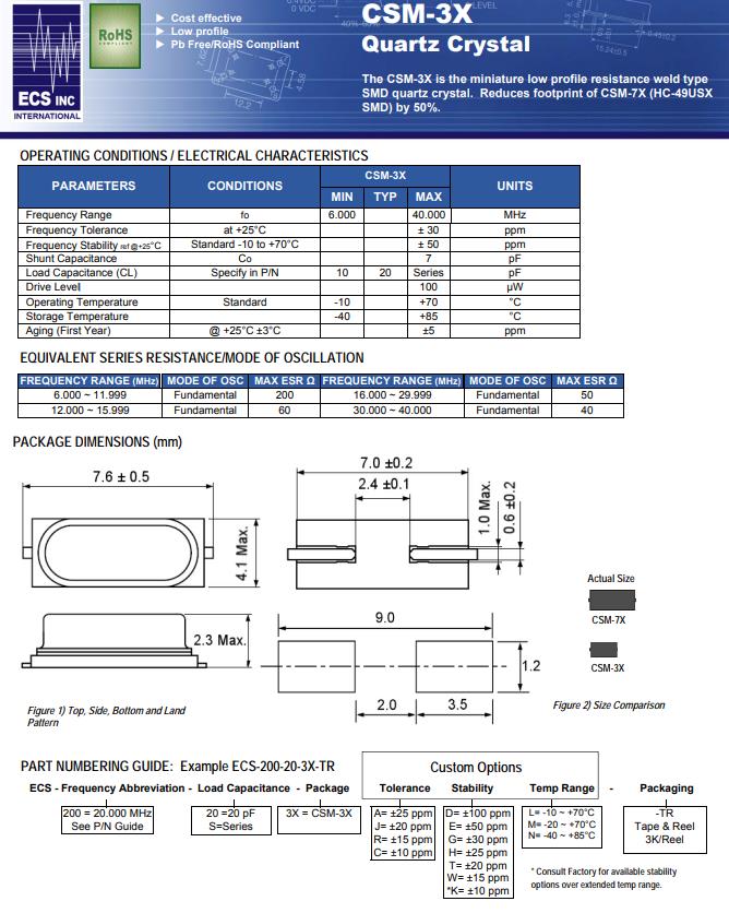 | ECS-270-20-3X-TR | CSM-3X | 27MHz | ±30ppm | 20pF | -10°C ~ 70°C | HC49/US |