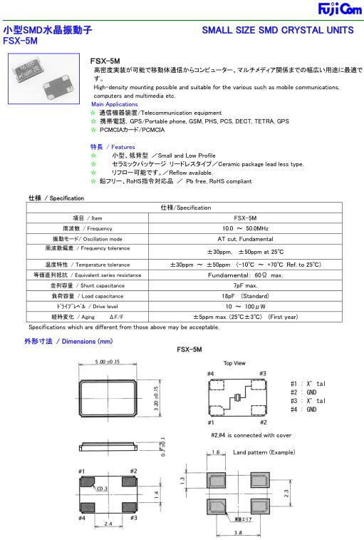 日本富士晶振,FSX-5M高質(zhì)量晶振,5032mm四腳貼片晶振,智能手機(jī)晶振,產(chǎn)品具有高精度超小型的表面貼片型石英晶體振蕩器,最適用于移動(dòng)通信終端的基準(zhǔn)時(shí)鐘等移動(dòng)通信領(lǐng)域.比如智能手機(jī),無(wú)線通信,衛(wèi)星導(dǎo)航,平臺(tái)基站等較高端的數(shù)碼產(chǎn)品,晶振本身小型,薄型具備各類(lèi)移動(dòng)通信的基準(zhǔn)時(shí)鐘源用頻率,貼片晶振具有優(yōu)良的電氣特性,耐環(huán)境性能適用于移動(dòng)通信領(lǐng)域,滿(mǎn)足無(wú)鉛焊接的高溫回流溫度曲線要求.