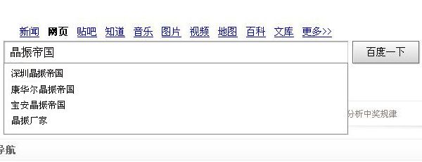 大家都知道百度搜索引擎有一個“搜索建議”功能,即當用戶在輸入搜索詞時,搜索文本框下方會自動顯示與搜索詞相關的詞匯供用戶選擇,這可以加快輸入速度、改善用戶體驗。就好像下面圖所示,你輸入晶振帝國下面就會出現很多選擇,有深圳晶振帝國、康華爾晶振帝國、晶振廠家等等一些相關詞語。