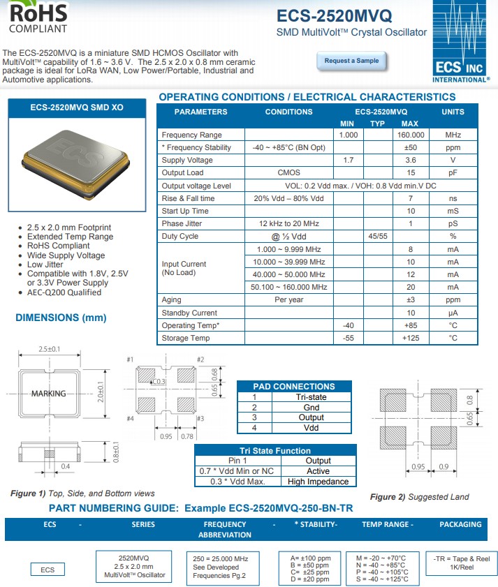 | ECS-2520S25-500-FN-TR | ECS Crystal | ECS-2520S | 50MHz | -40°C ~ 85°C |