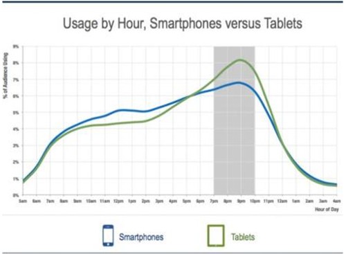 不同時間段智能手機(jī)與平板電腦的使用情況