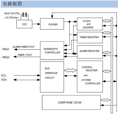 基本性能 時(shí)鐘和日歷、報(bào)警、定時(shí)器、頻率輸出、溫度傳感器與內(nèi)建電源切換等