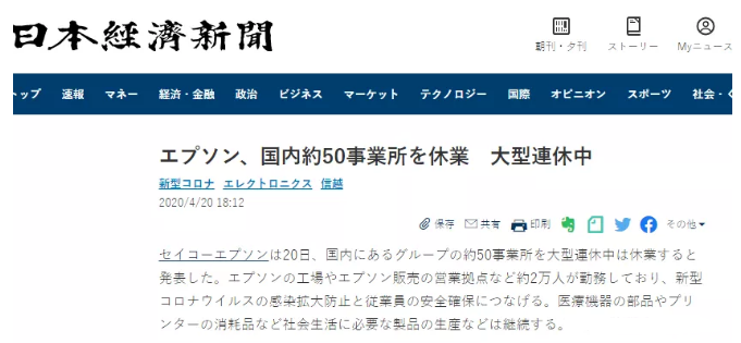 在日本企業(yè)中愛(ài)普生集團(tuán)不是首家因新冠病毒疫情影響停工的企業(yè)了,較上周有東芝也宣布在日本本土內(nèi)所有企業(yè)停工,相信最近相繼宣布的企業(yè)會(huì)越來(lái)越多。