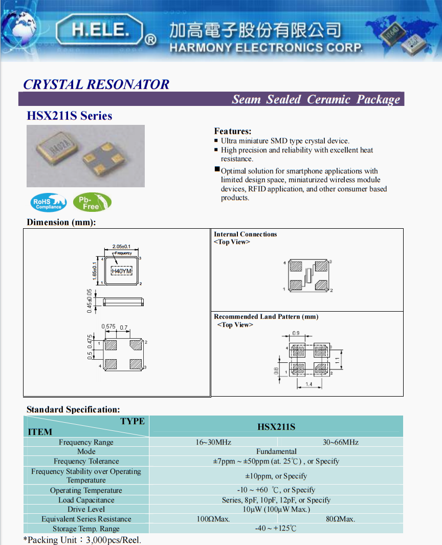 X2CL027000BA1H-U晶振,臺灣HELE環(huán)保晶體,智能語音助手晶振,特點:超小型貼片型晶體器件。精度高,可靠性好,耐熱性好。適用于設(shè)計空間有限的智能手機應(yīng)用程序、初始化無線模塊設(shè)備、RFID應(yīng)用程序和其他基于消費者的產(chǎn)品.臺灣加高晶振公司,HELE晶振,小尺寸晶振,2016晶振,超小型晶振,低損耗晶振,高品質(zhì)晶振,高精度晶振,環(huán)保無鉛晶振,電腦主板晶振,智能穿戴設(shè)備晶振,6G通訊終端晶振,程控交換機晶振,無人機晶振。